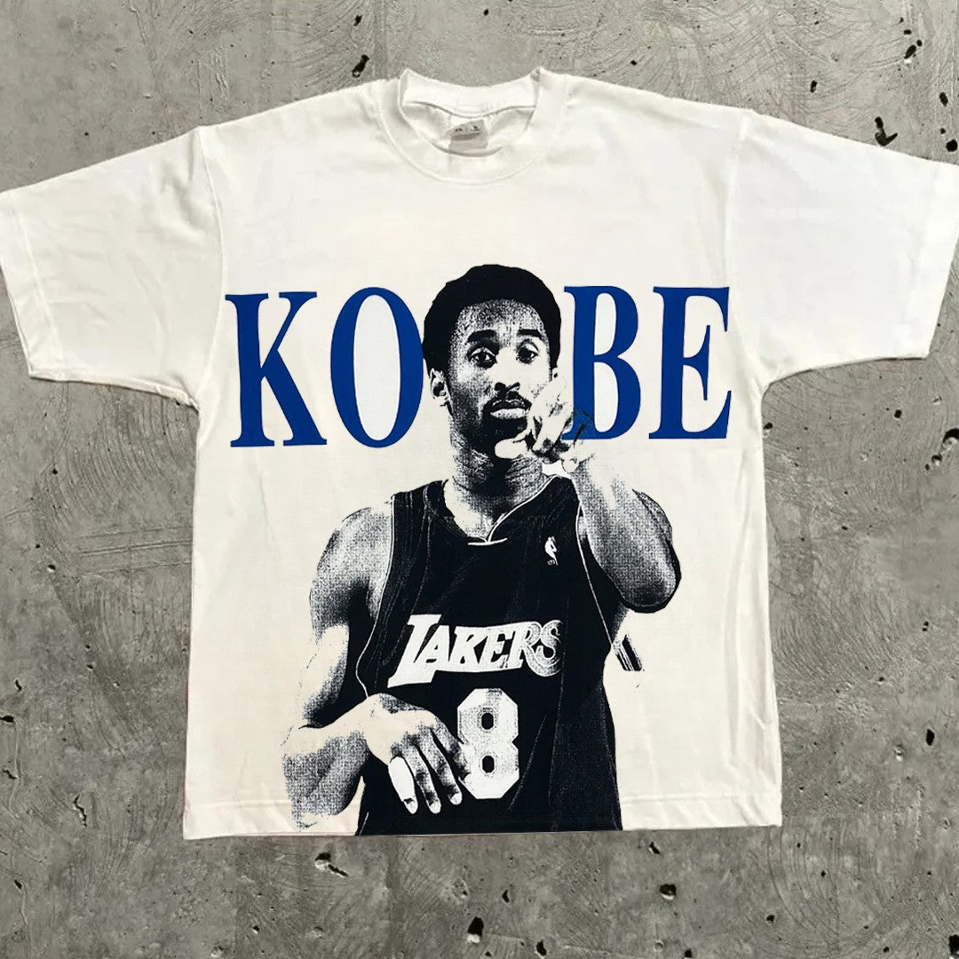Luce el legado de una leyenda con esta playera retro inspirada en Kobe Bryant, diseñada para verdaderos fanáticos del baloncesto. Su estampado vintage en tonos oscuros destaca una de sus etapas más emblemáticas con los Lakers, combinado con un diseño minimalista y moderno que resalta el nombre “KOBE” en gran formato.